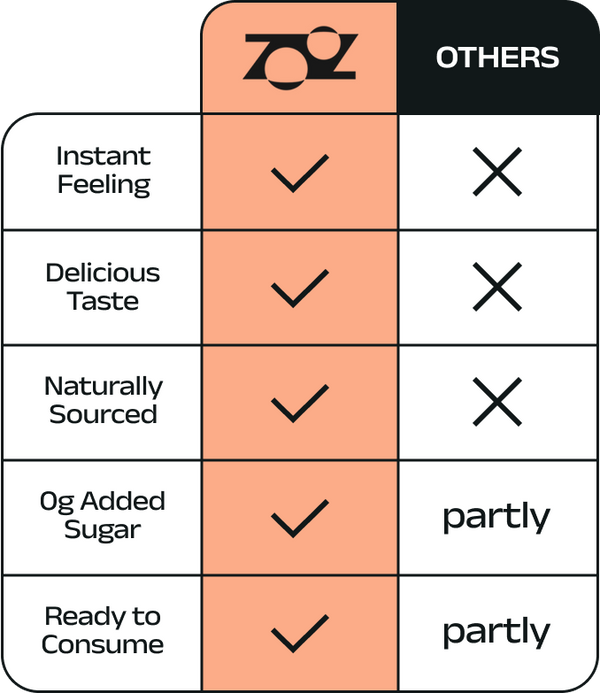 ZOOZ is the only three-drink system designed around modern rituals. We use functional organic mushrooms and botanicals, sweetened only with honey—zero flavourings, natural or artificial.