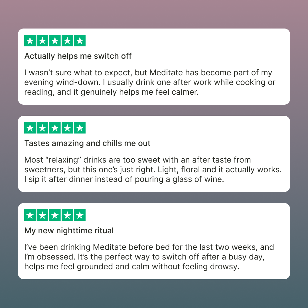 Meditate actually works. I sleep faster and wake up without that heavy head. The flavour’s floral but not sweet, perfect before bed.